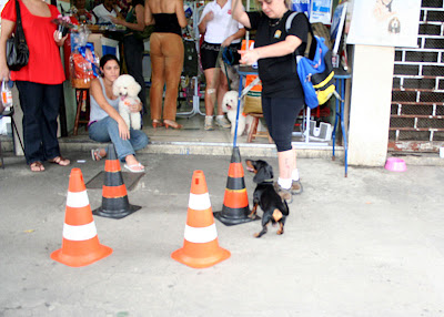 Tivemos até uma demonstração de faro com o daschund Toshio, que encontrou sua bolinha sob um dos cones.